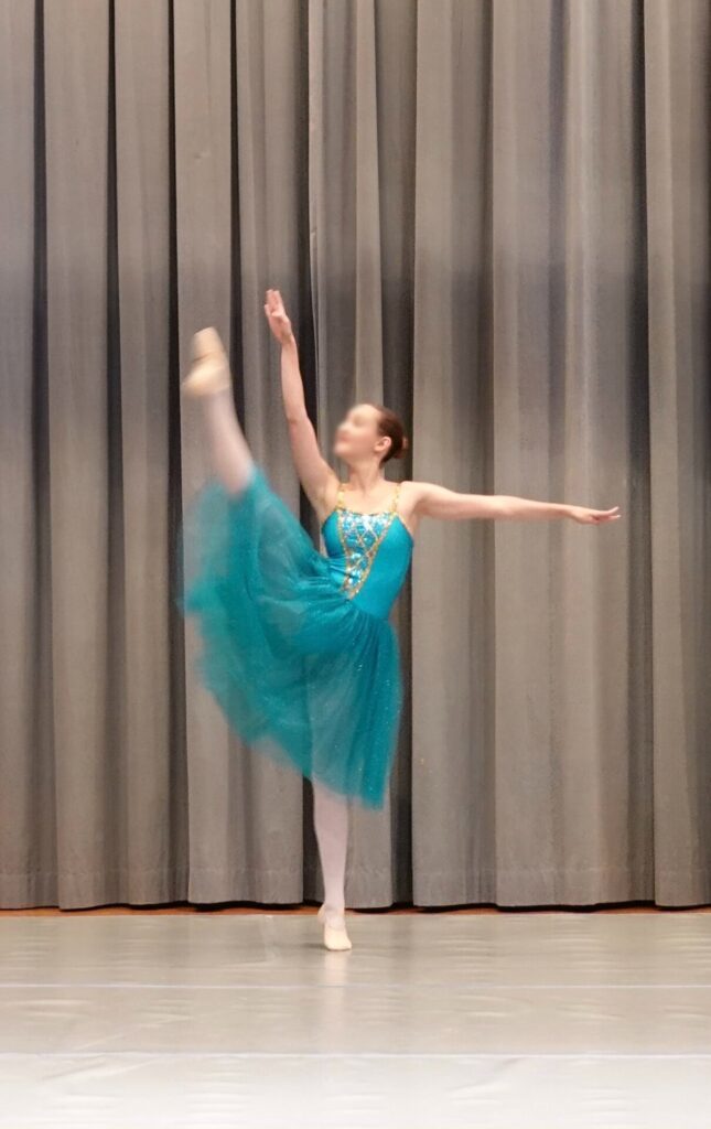 Meine Schülerinnen kommen hauptsächlich aus Zumikon, Zollikon und Zollikerberg. Besonders erwähnen möchte ich meine Schülerin Christina Grimm (16), die seit zehn Jahren bei mir lernt und ein sehr gutes Niveau erreicht hat. Nach einem halben Jahr als Austauschschülerin in England, während dem der Unterricht online stattfand, ist sie wieder in Zumikon und sie konnte mit Spitzenschuhen ihre Variation zeigen.